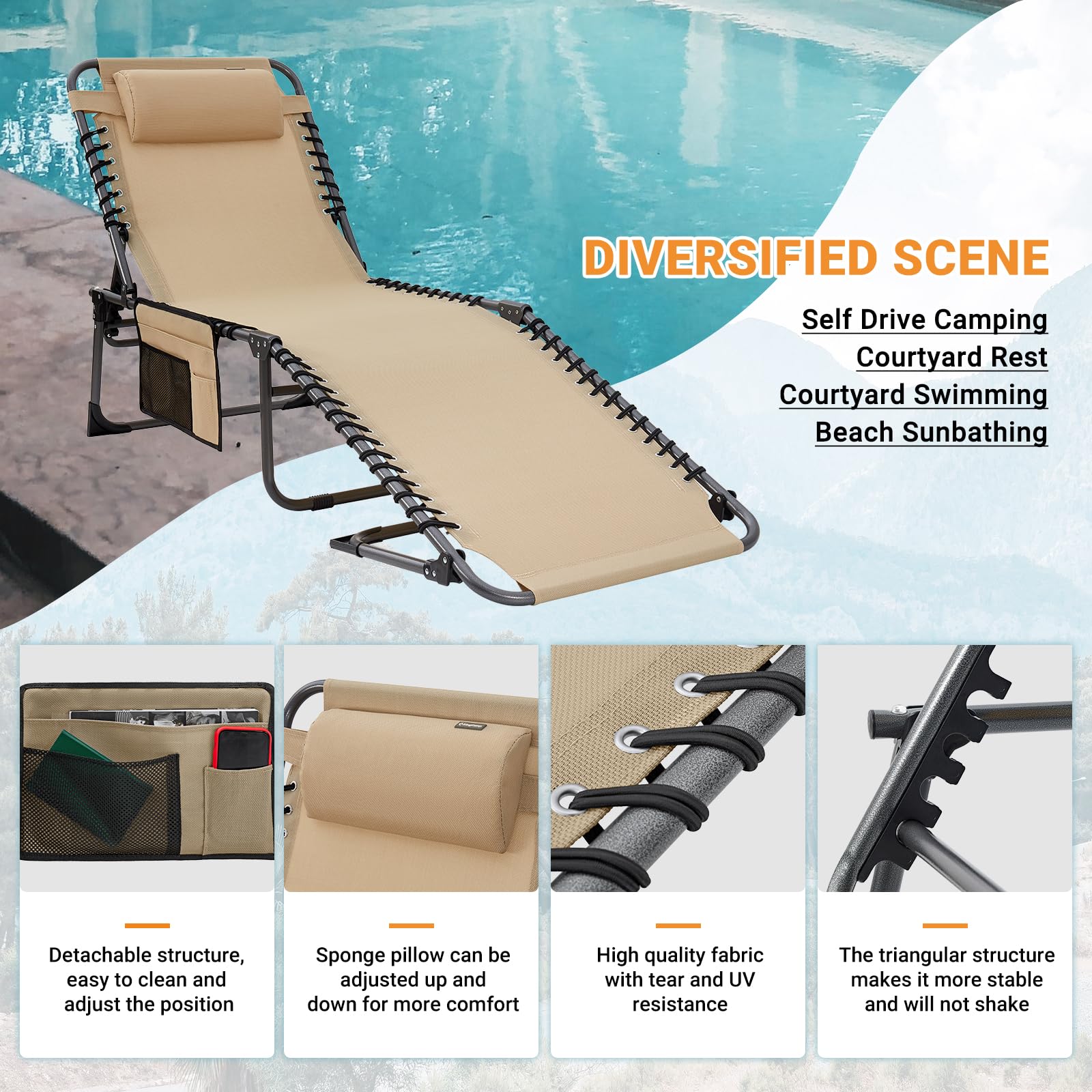KingCamp 4-Position Folding Chaise Lounge Chair