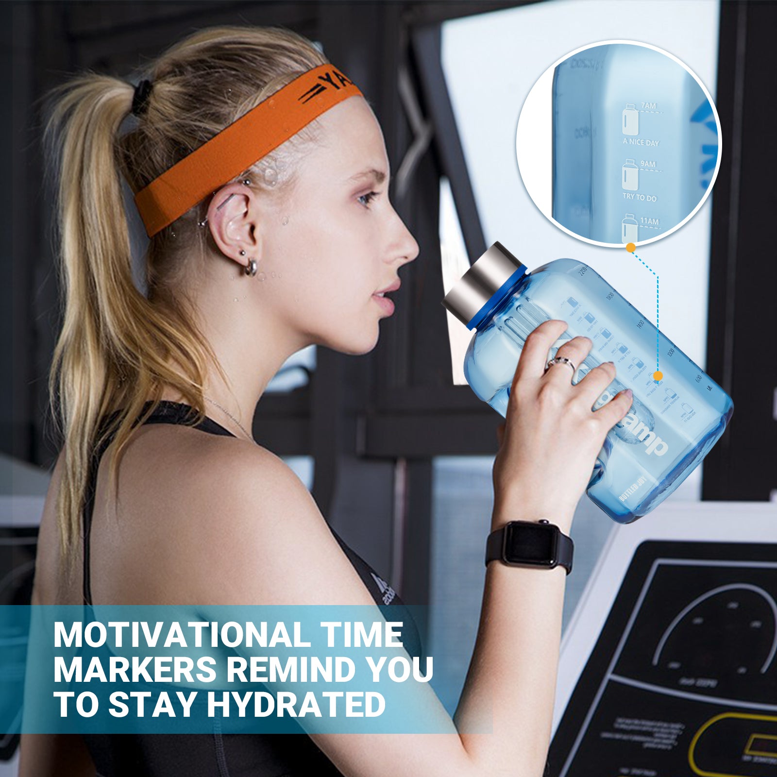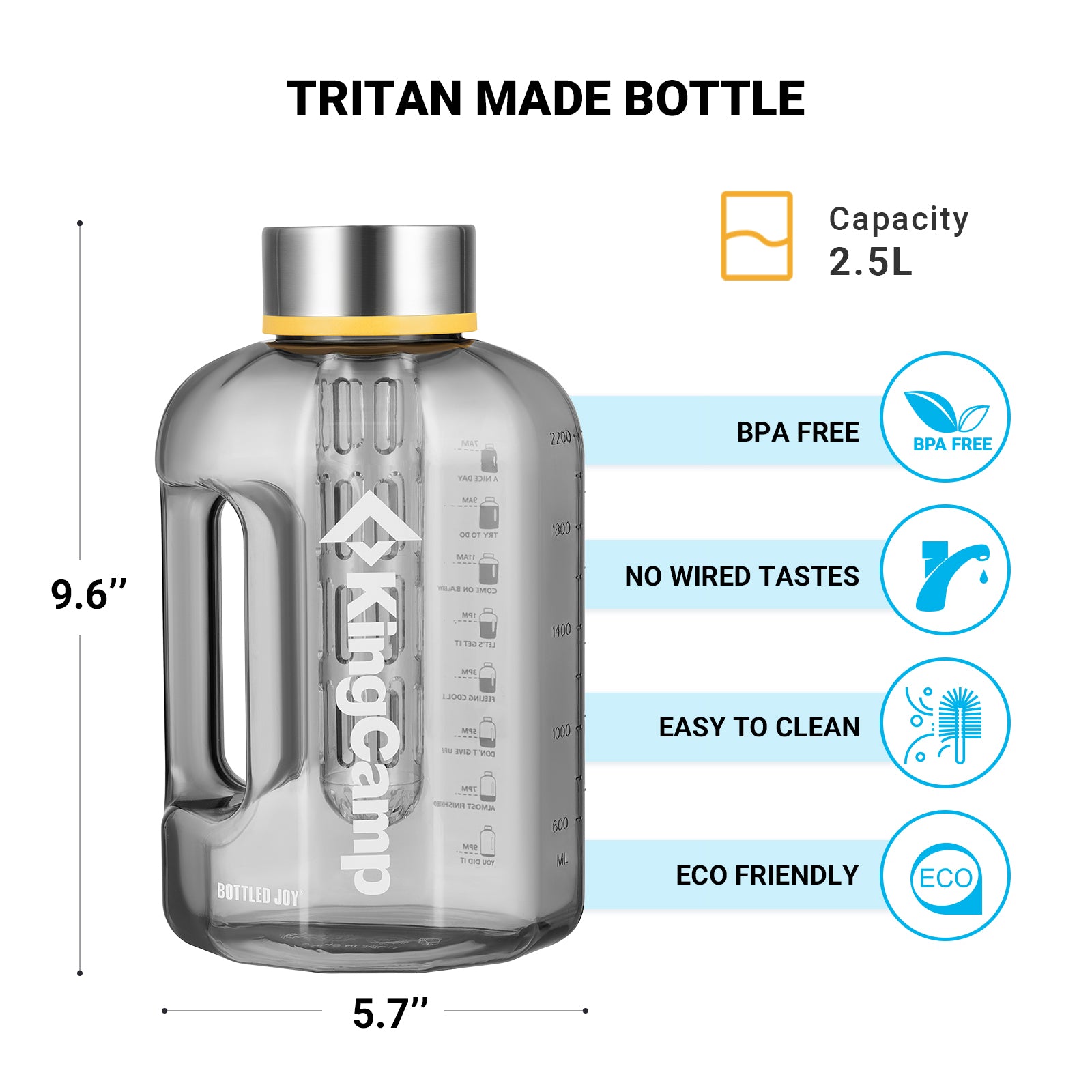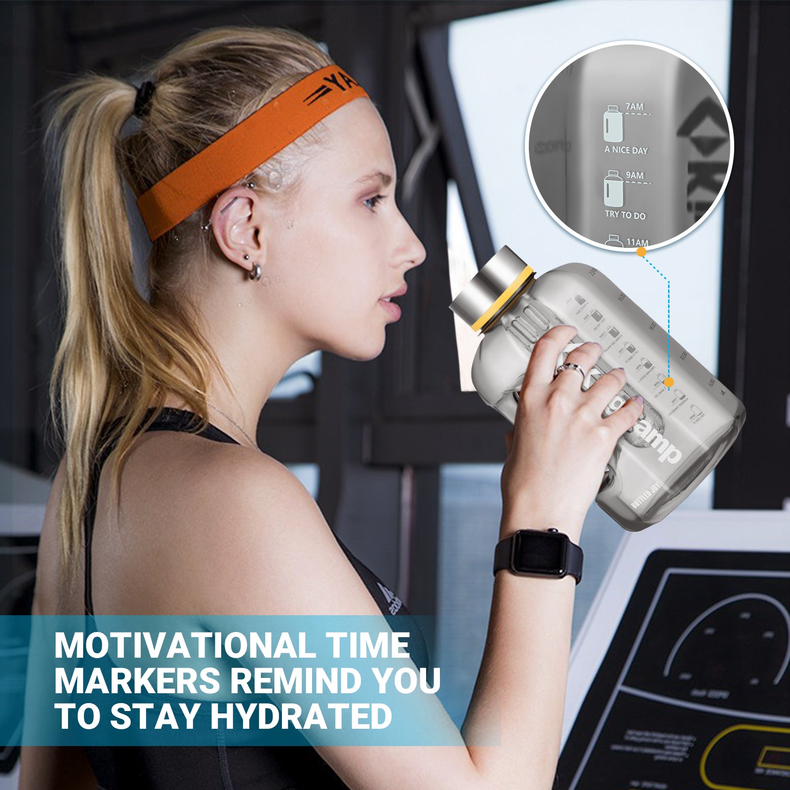 KingCamp 2.2L Sports Water Bottle Motivational time stamp to remind you of your daily water intake. Hourly graduated water bottle, helps you remember the amount of water you drank. Not just a bottle of water, but to promote a healthy lifestyle by providing drinking water throughout the day. Suitable for picnic use, gym, camping, home, fitness, travel, etc.