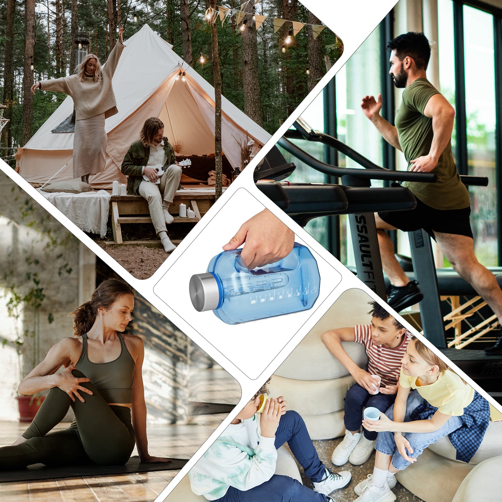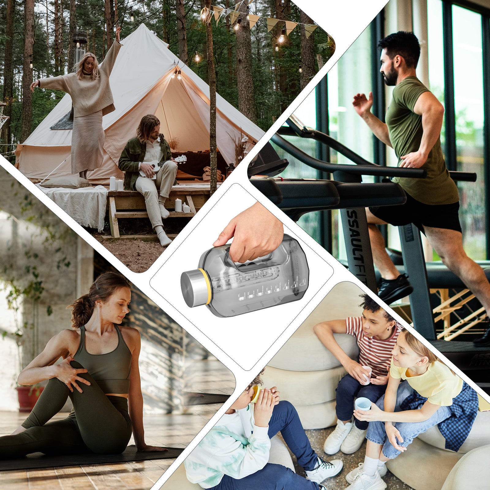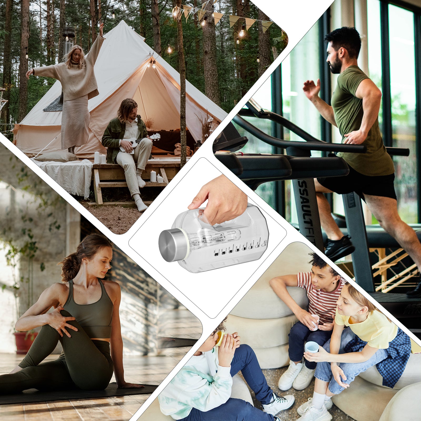 KingCamp 2.2L Sports Water Bottle Motivational time stamp to remind you of your daily water intake. Hourly graduated water bottle, helps you remember the amount of water you drank. Not just a bottle of water, but to promote a healthy lifestyle by providing drinking water throughout the day. Suitable for picnic use, gym, camping, home, fitness, travel, etc.
