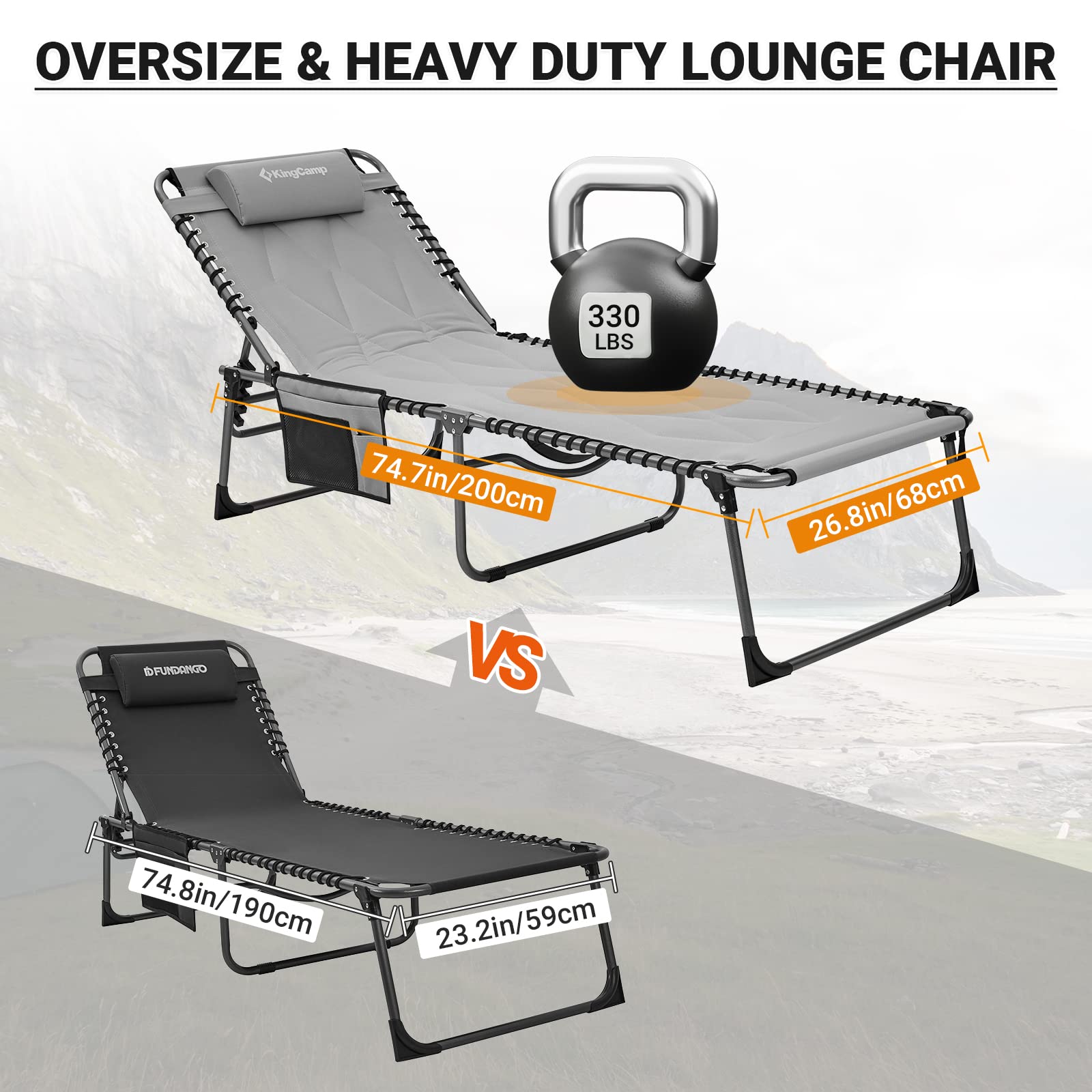 Sturdy and Comfortable¡¿Our padded chair goes beyond the norm, boasting a size of 78.7x26.7in (L*W), making it 9CM wider and 10CM longer than typical lounge chairs. The double bungee design ensures all-around support, and the 600D Oxford fabric with 1.5cm thickness PU offers advantages such as aging resistance, UV resistance, smoothness, waterproofing, and oil resistance. It's more breathable and ventilated compared to other materials.