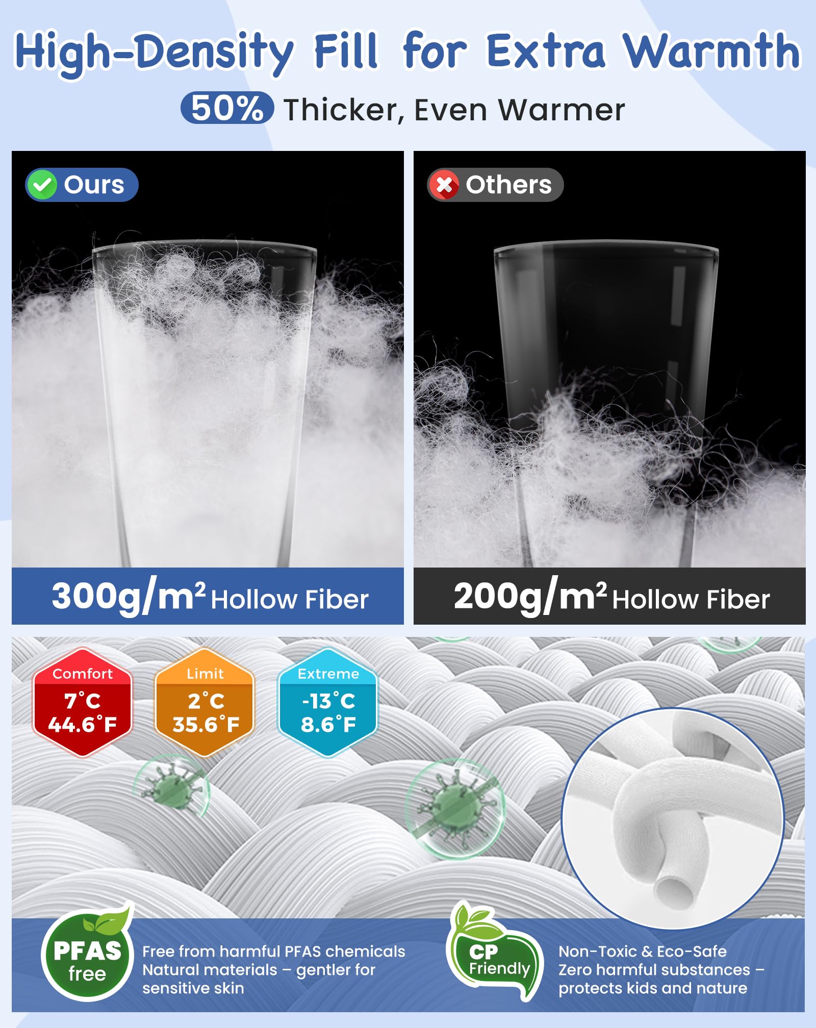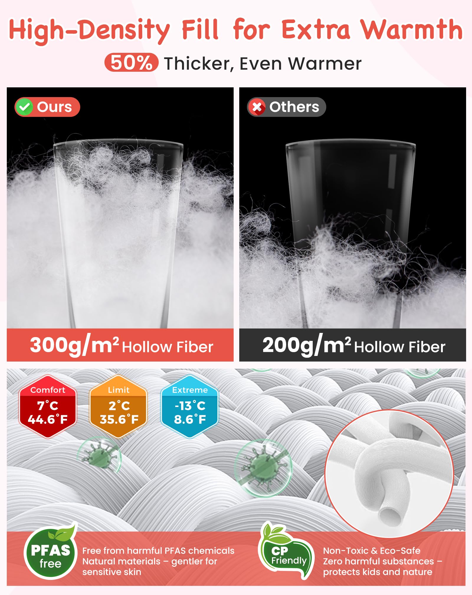 300G/M2 Hollow Cotton Filling: The hollow cotton filling ensures effective insulation, isolating your child from air conditioning and providing a cozy warmth.