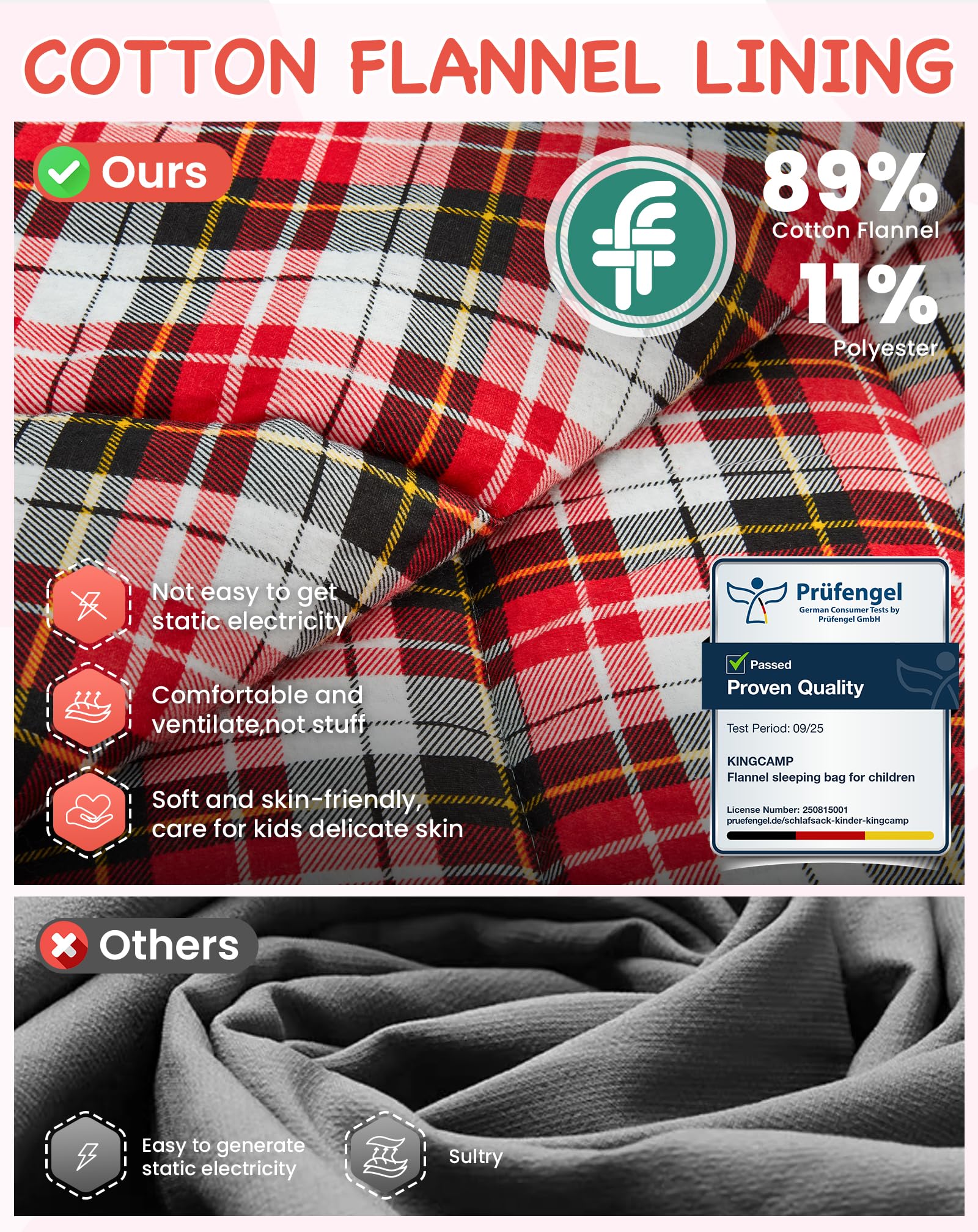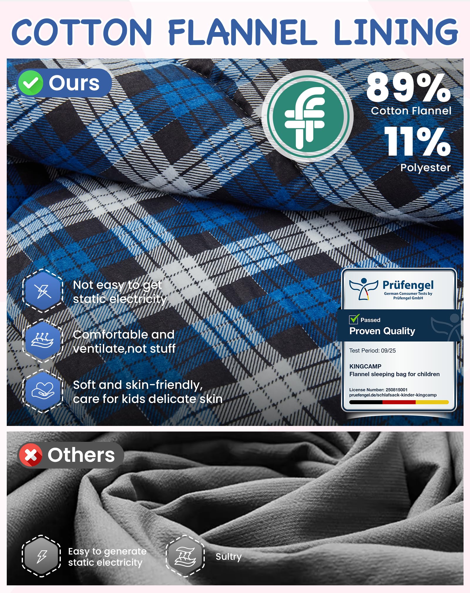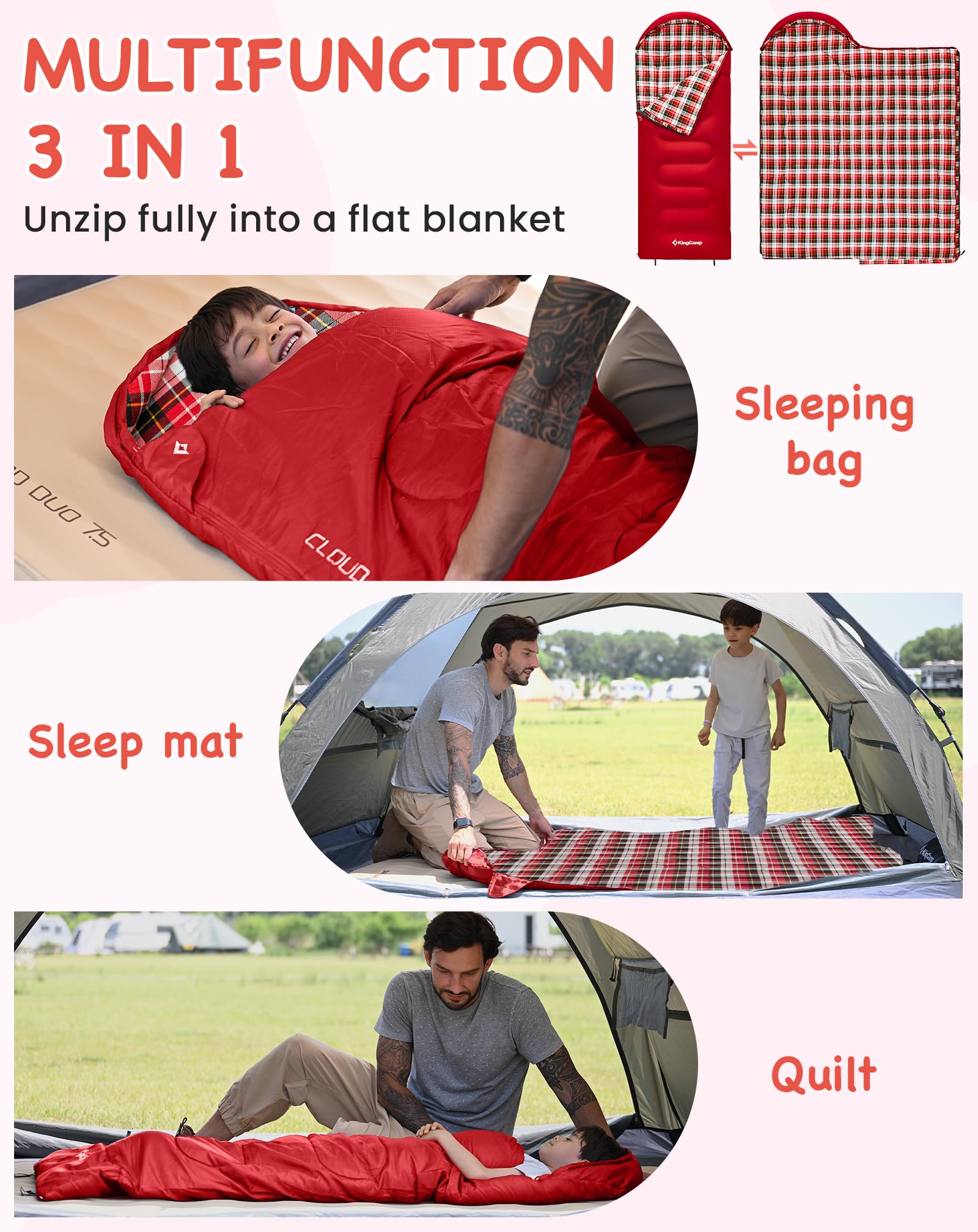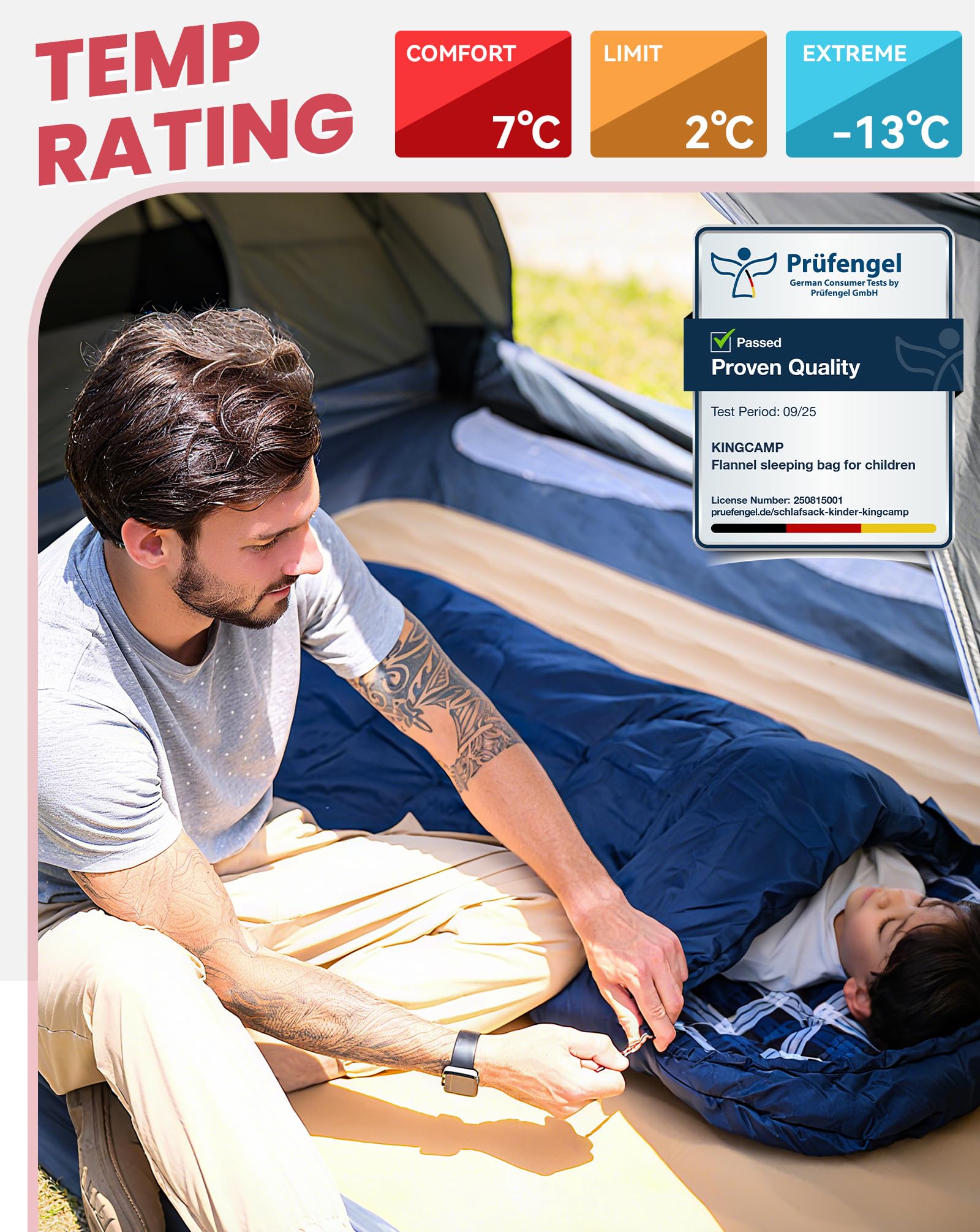 KingCamp CLOUDY Envelope Sleeping Bag with Hood for Children | Water-Resistant & Machine Washable
