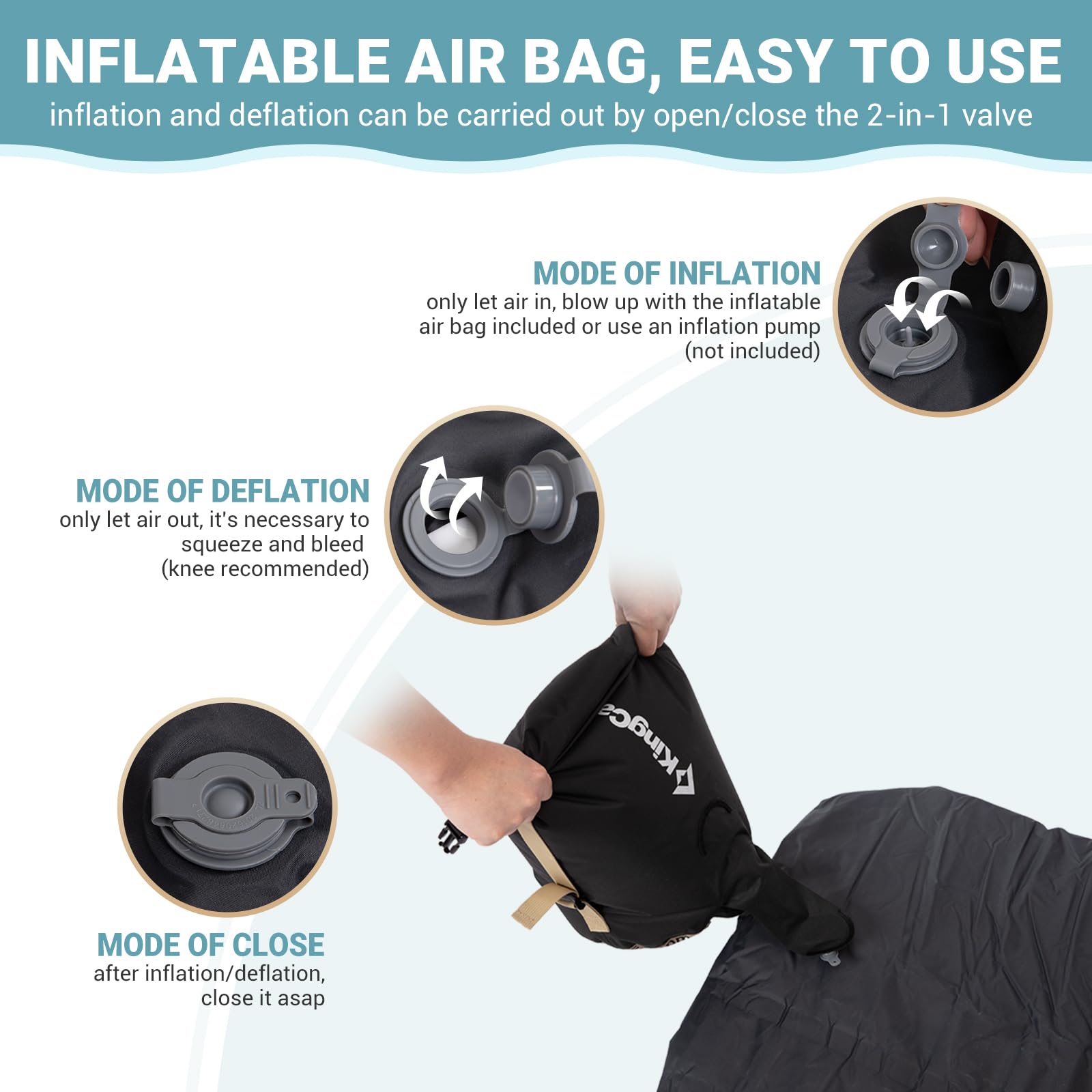 Efficient Double-Layer Air Valve: Featuring a double-layer air valve, our pad offers quick and stable charging and discharging. Simply open the outer layer to inflate in one direction, preventing air leakage. Fully opening both layers allows for rapid deflation, enhancing efficiency.